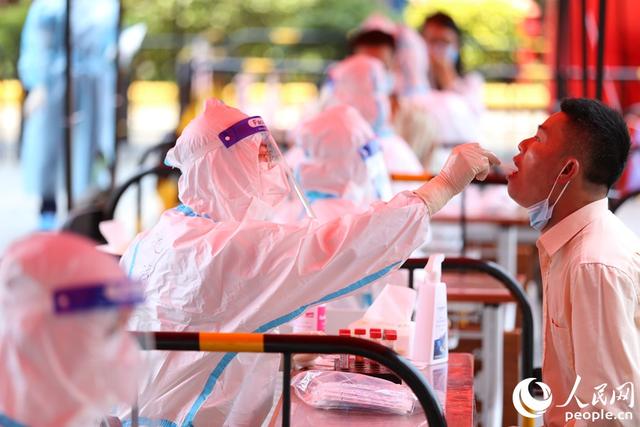 厦门市湖里区园山社区,医护人员为市民进行核酸检测。人民网 陈博摄