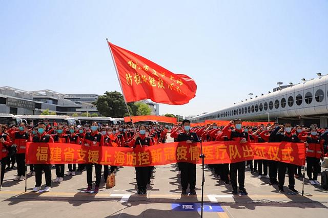 2022年支援上海防控新冠疫情医疗队出征仪式。厦门市卫健委供图